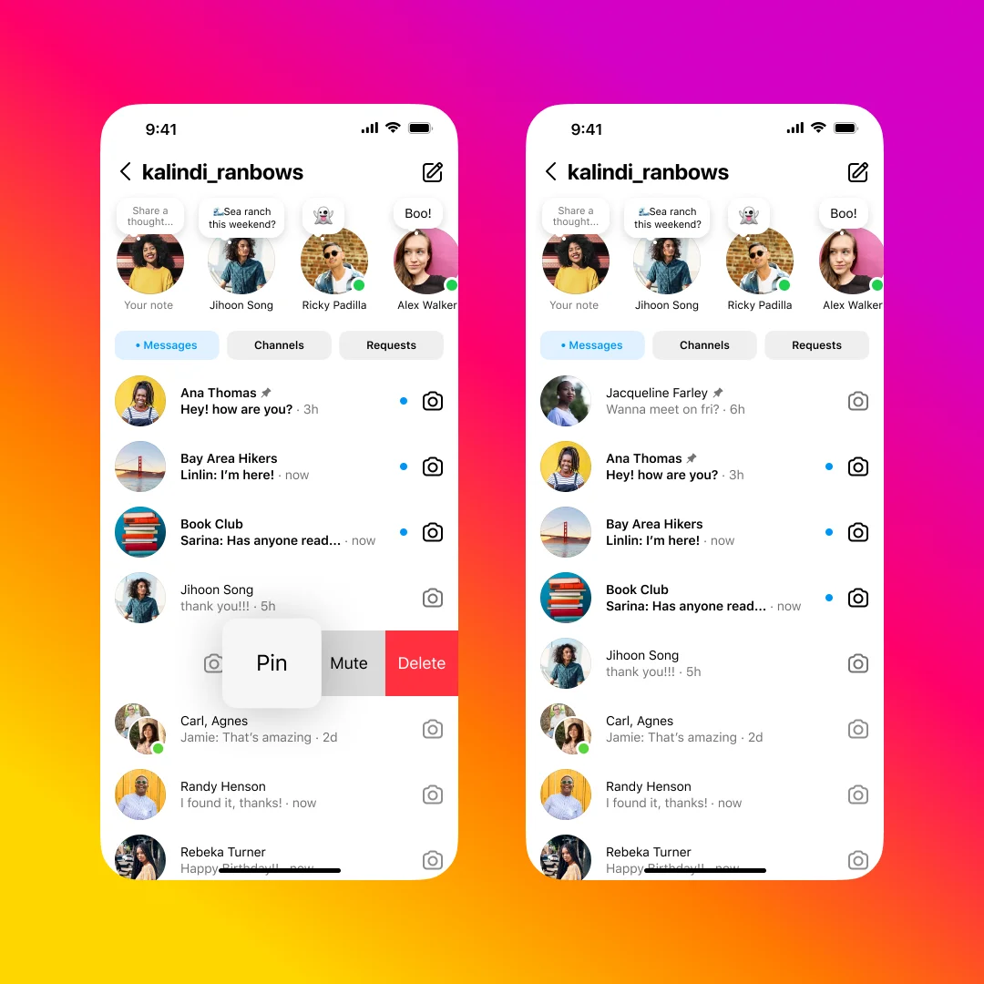 Angepinnte Chats bleiben immer oben in deinem Postfach und ermöglichen einen schnellen Zugriff. ©Instagram